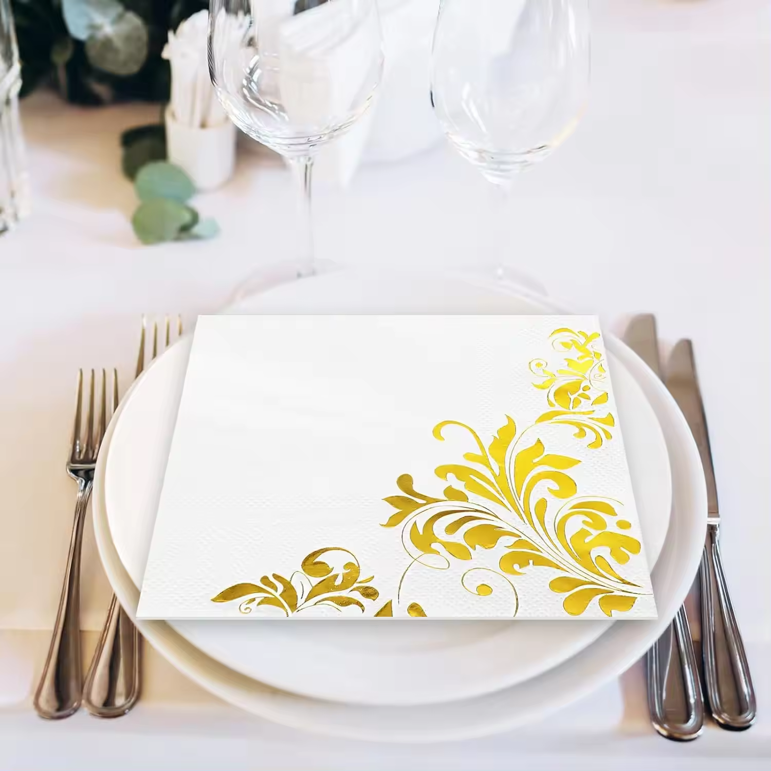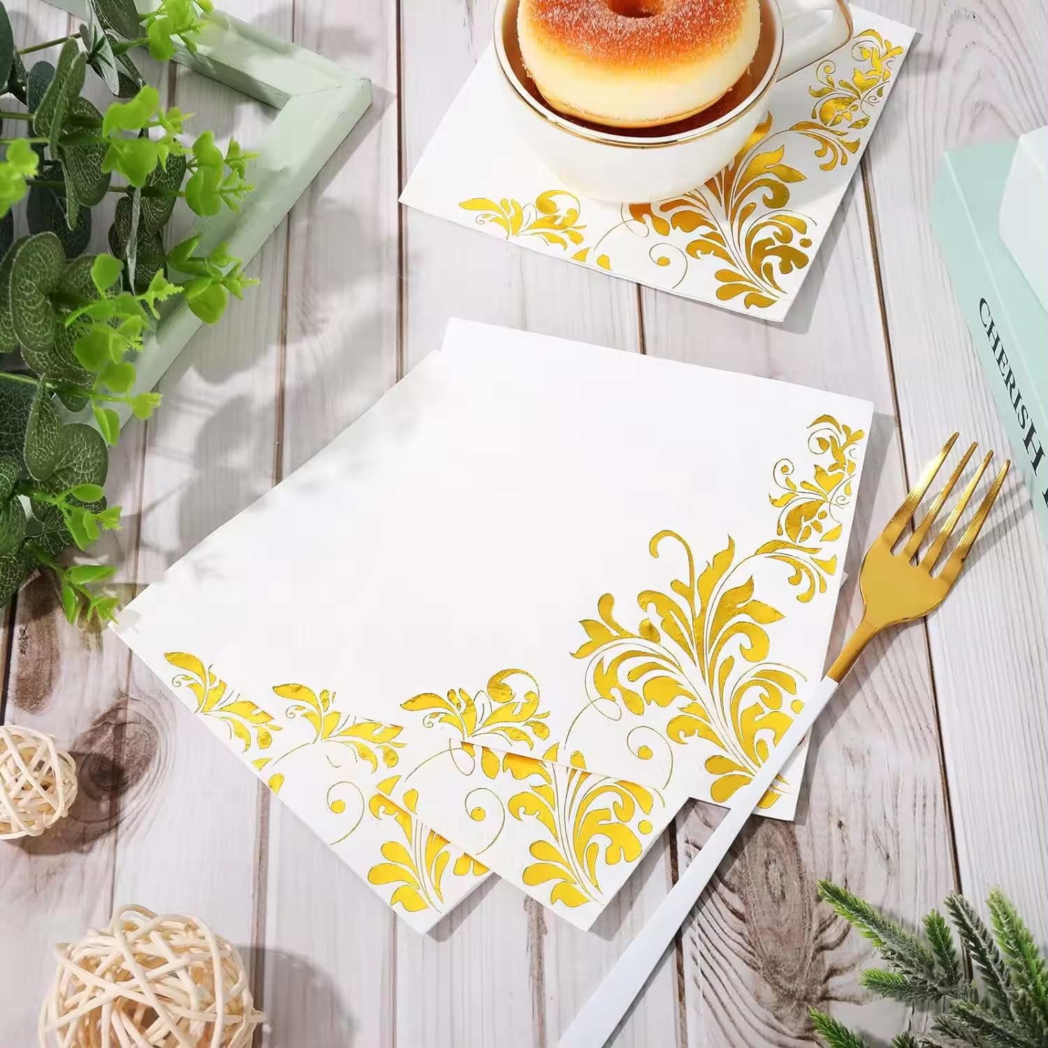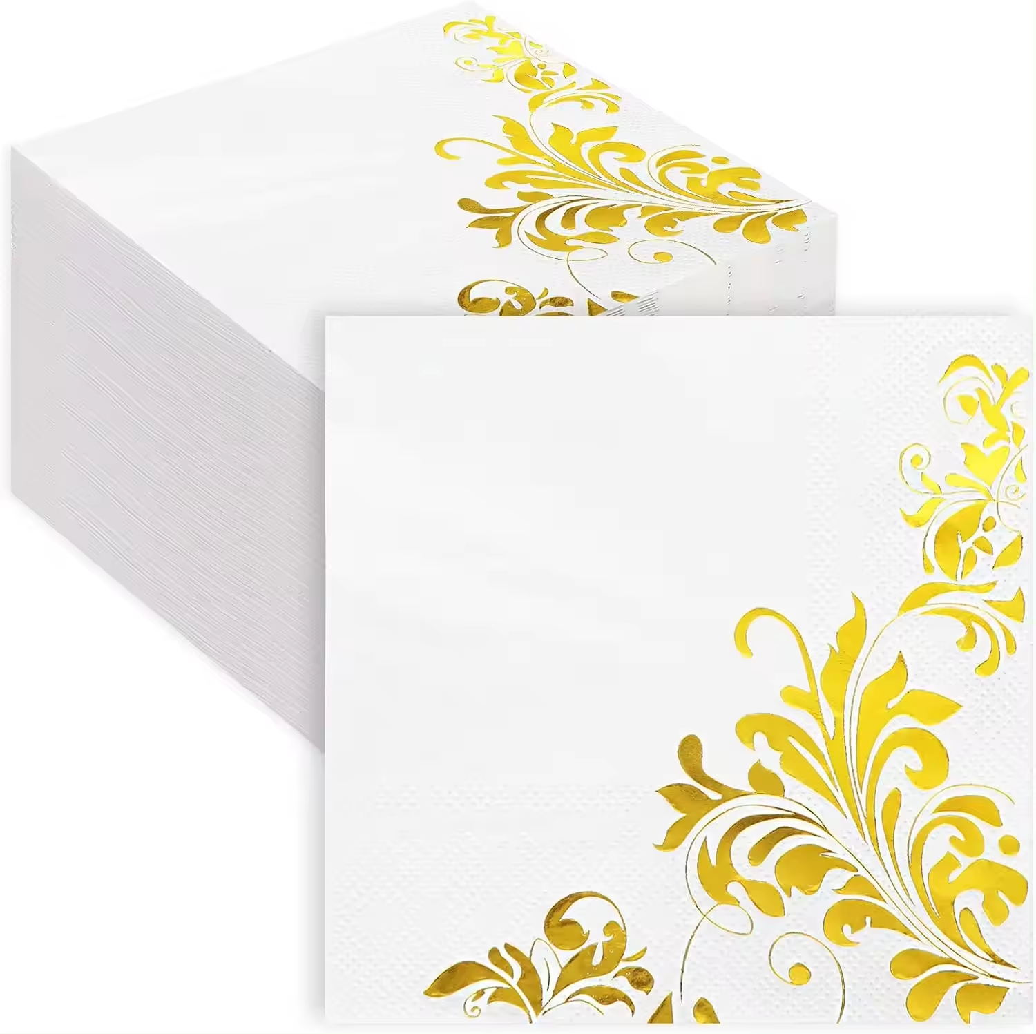 White Gold Cocktail Napkins 3ply Gold Foil Disposable Beverage Napkins Paper Dinner Napkins