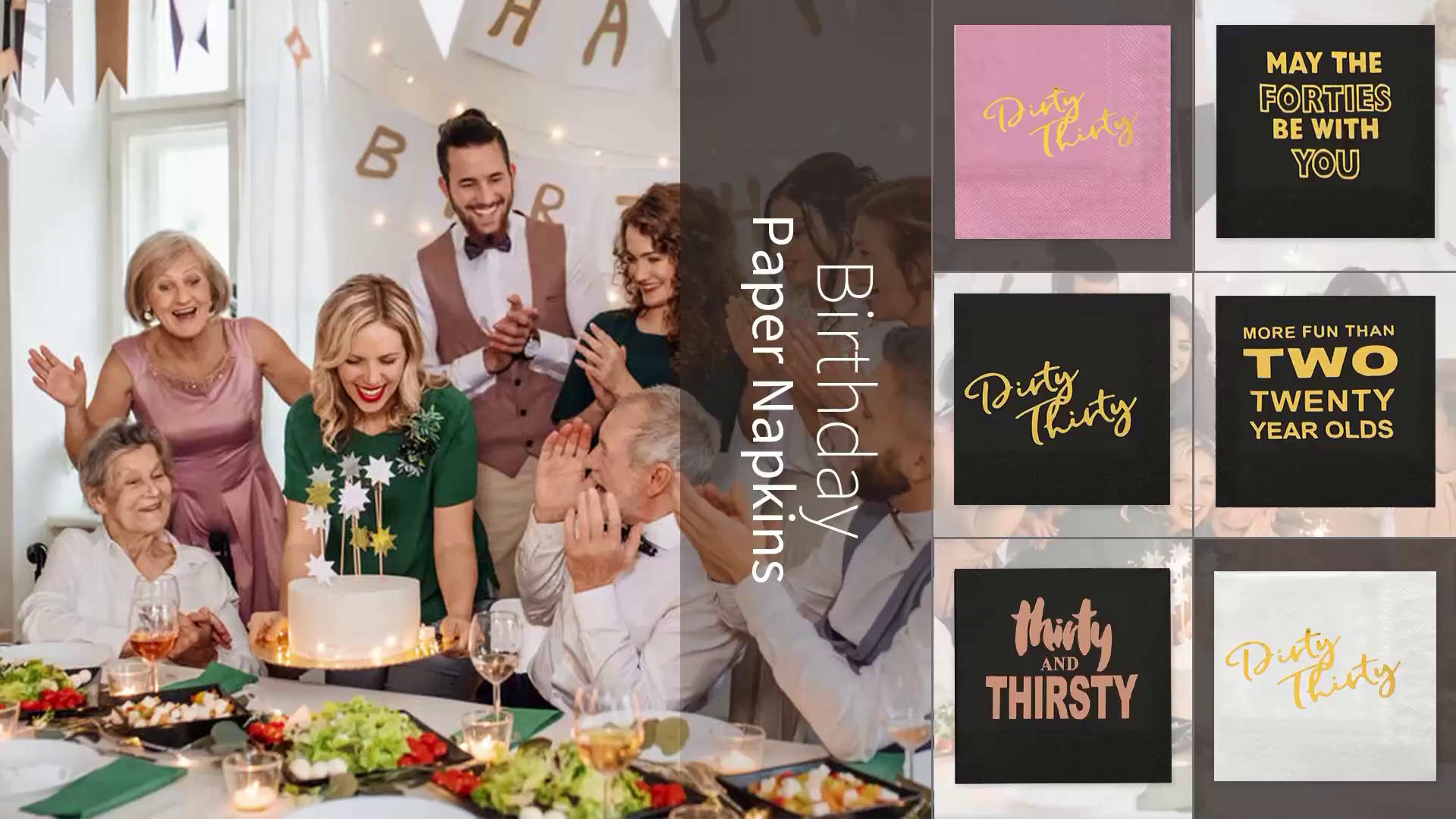 Cocktail Napkins Birthday Party Napkins Paper with Gold Foil for Thirty Birthday Anniversary Dessert