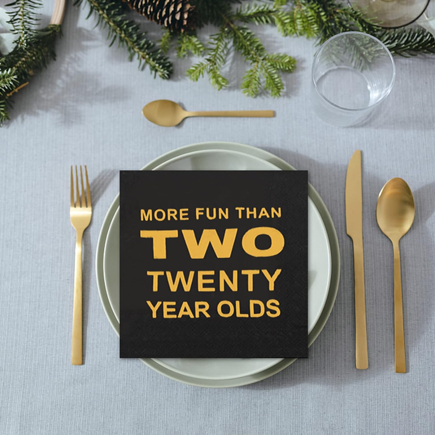 【Party Essentials】Gold foil design with humorous and funny text, no more boring conventional birthday anniversary, bring more joy and playfulness to your party. Age is no longer a limitation, but an experience. Start your party experience with a difference with these humorous party napkins! 【Durable & Absorbent】Made from 100% natural virgin wood pulp. Each cocktail napkin is delicate to the touch and absorbent to use, quickly absorbing water stains from the party. 【Wide Application】Cocktail napkins are suitable for home table parties, bars, birthday parties, weddings, bachelorette parties, retirement and anniversary scenes. With its humorous anniversary design and classic color scheme, it's the perfect choice for your party.