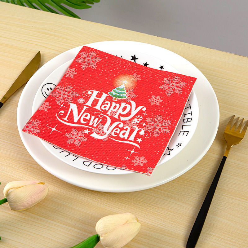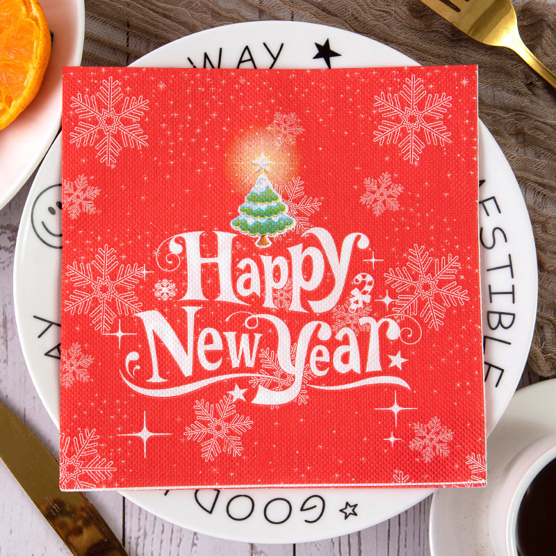 New Year Printed Napkins Christmas Restaurant Decorative Napkins