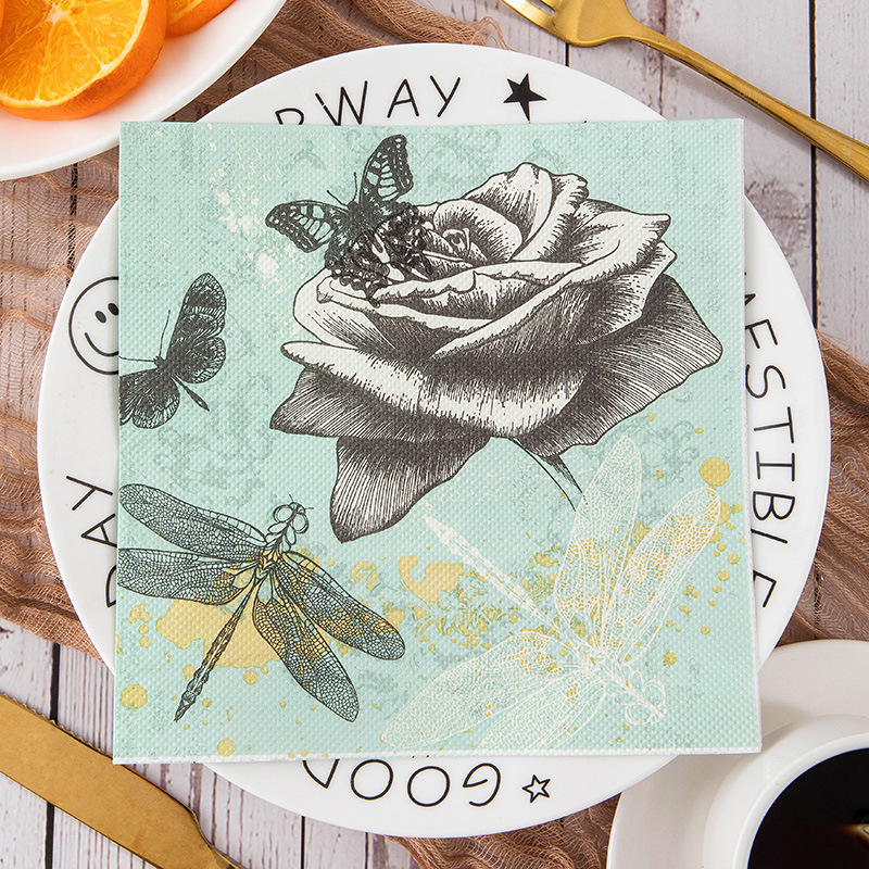 Pure Wood Pulp Napkins Ready-to-Sell Color Printing and Hot Stamping Napkins 2-Ply Add more decorative colors to the party and make your guests feel happy and satisfied.
